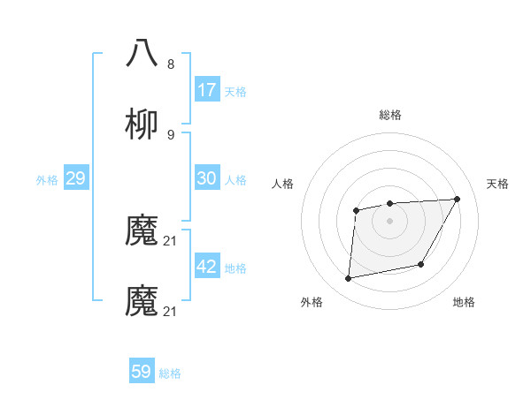 八柳 魔魔さんを姓名の画数から五運を鑑定