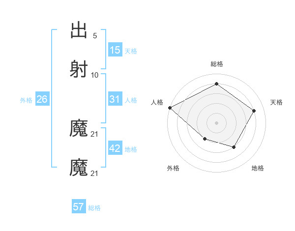 出射 魔魔さんの総格は57画の4点!