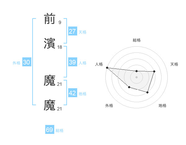 前濱 魔魔さんの総格は69画の1点!