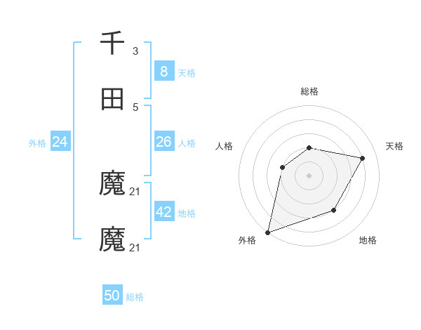 千田 魔魔さんを姓名の画数から五運を鑑定