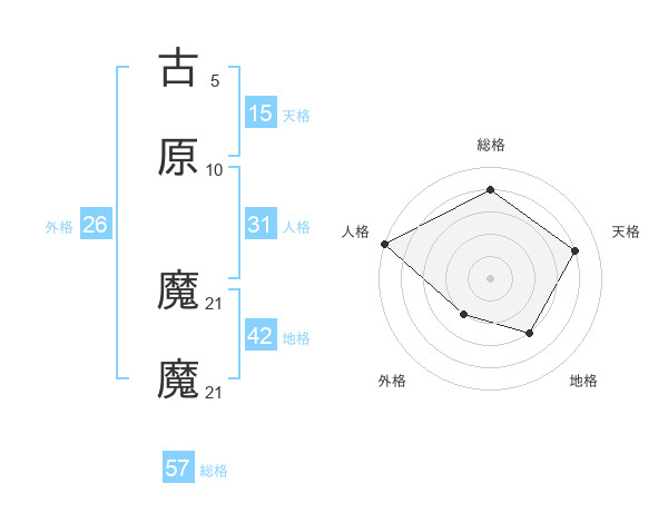 古原 魔魔さんの総格は57画の4点!