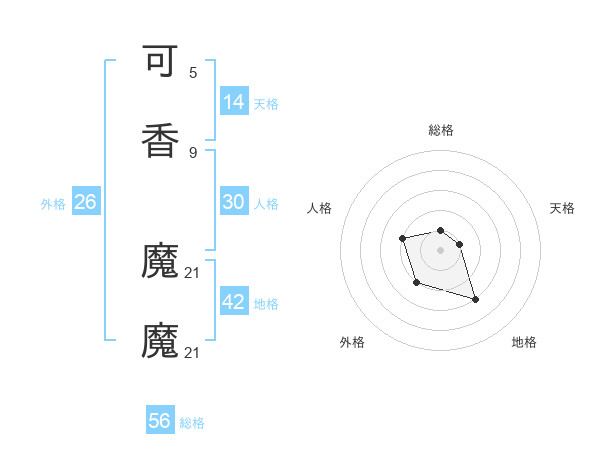 可香 魔魔さんを姓名の画数から五運を鑑定