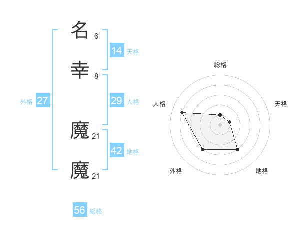 名幸 魔魔さんを姓名の画数から五運を鑑定