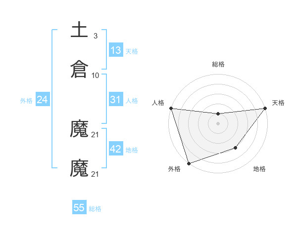 土倉 魔魔さんを姓名の画数から五運を鑑定