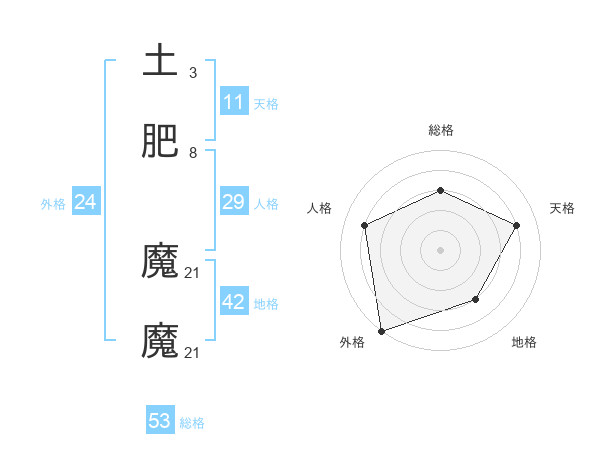 土肥 魔魔さんの総格は53画の3点!