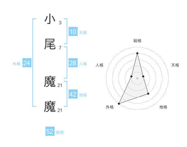 小尾 魔魔さんの総格は52画の4点!