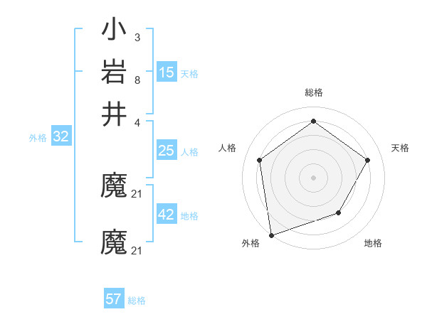 小岩井 魔魔さんを姓名の画数から五運を鑑定