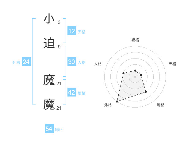 小迫 魔魔さんの外格は24画の5点!