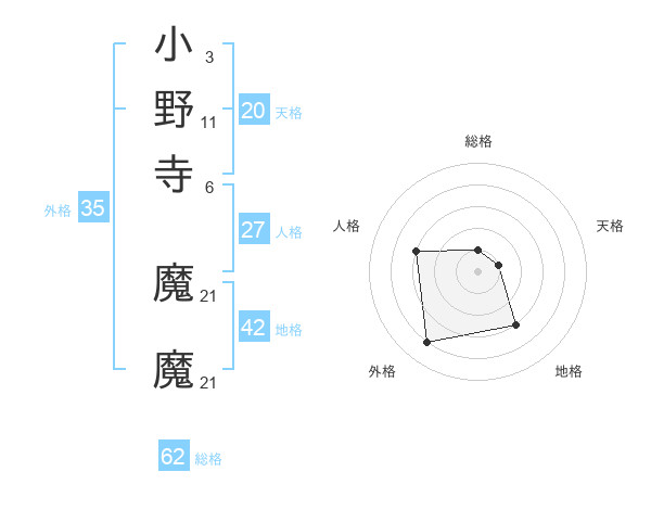 小野寺 魔魔さんを姓名の画数から五運を鑑定