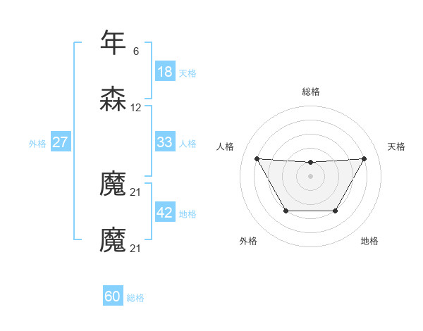 年森 魔魔さんを姓名の画数から五運を鑑定
