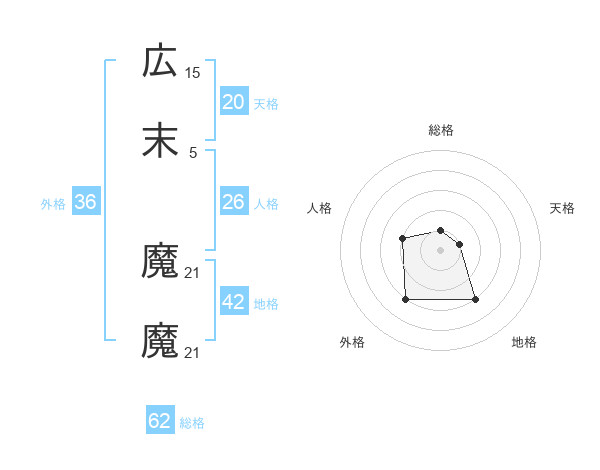 広末 魔魔さんの総格は62画の1点!