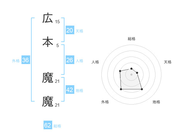 広本 魔魔さんを姓名の画数から五運を鑑定
