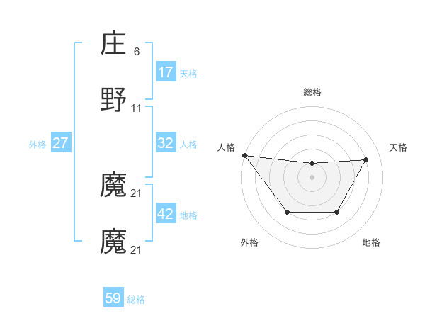 庄野 魔魔さんを姓名の画数から五運を鑑定