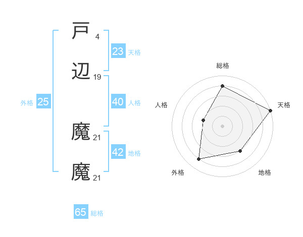 戸辺 魔魔さんを姓名の画数から五運を鑑定