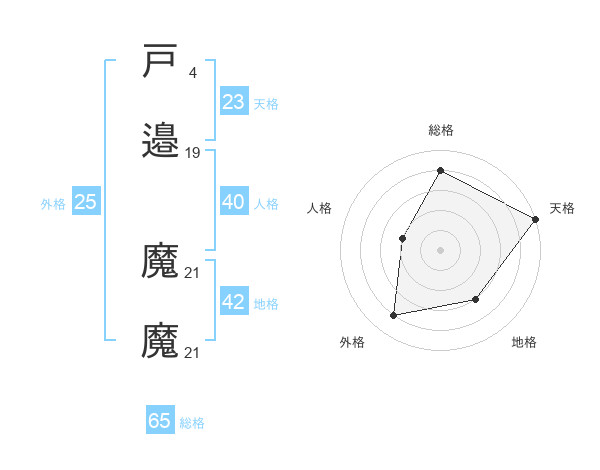 戸邉 魔魔さんの総格は65画の4点!