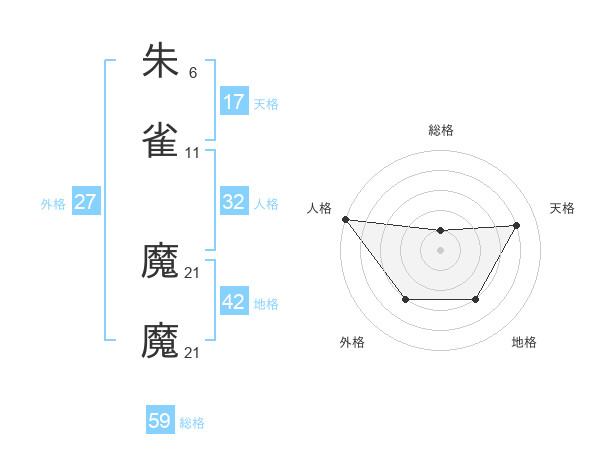 朱雀 魔魔さんを姓名の画数から五運を鑑定