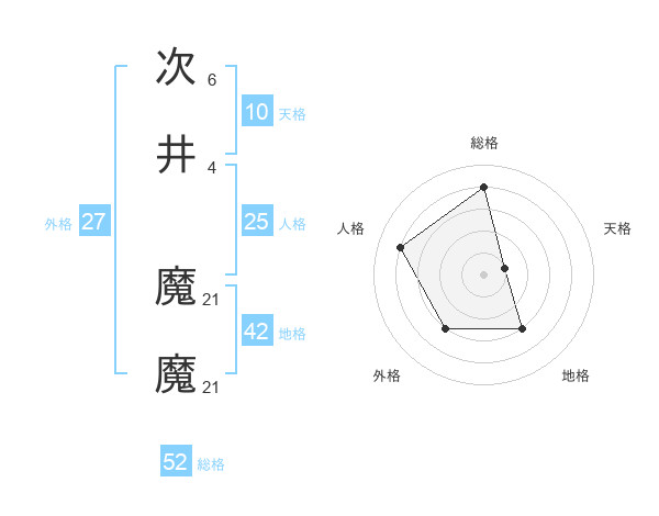 次井 魔魔さんの総格は52画の4点!