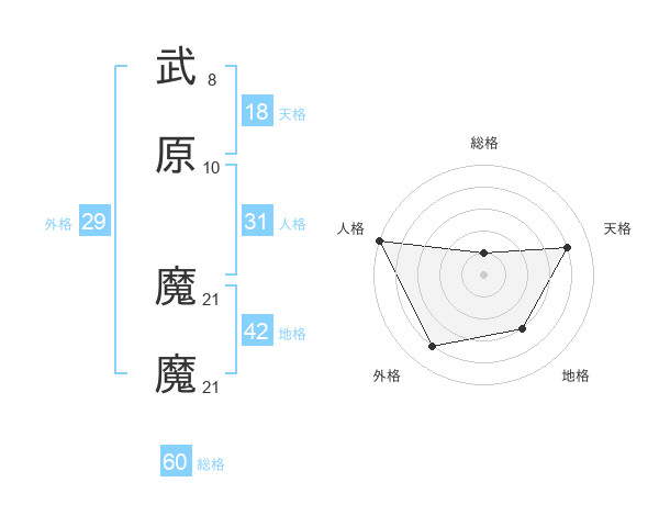 武原 魔魔さんを姓名の画数から五運を鑑定