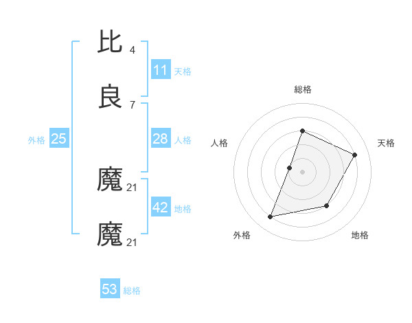 比良 魔魔さんを姓名の画数から五運を鑑定