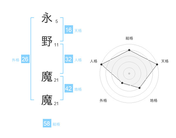 永野 魔魔さんの天格は16画の5点!