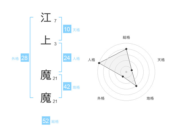 江上 魔魔さんを姓名の画数から五運を鑑定