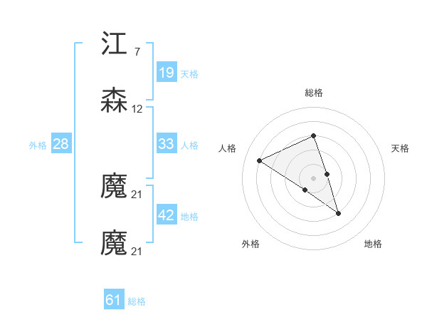 江森 魔魔さんの総格は61画の3点!