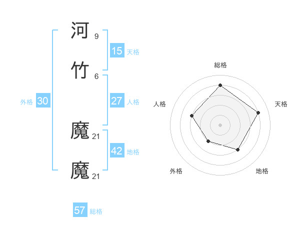 河竹 魔魔さんを姓名の画数から五運を鑑定