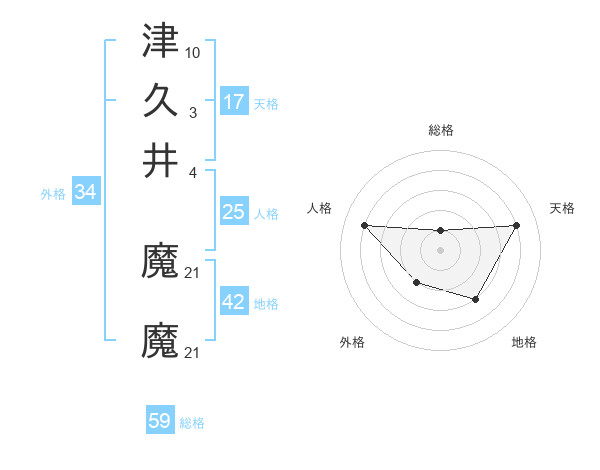 津久井 魔魔さんを姓名の画数から五運を鑑定