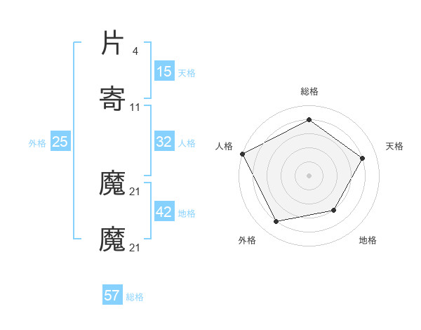 片寄 魔魔さんの総格は57画の4点!