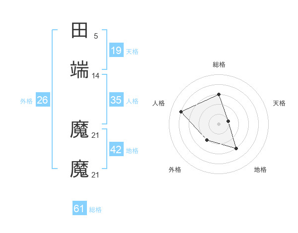 田端 魔魔さんを姓名の画数から五運を鑑定