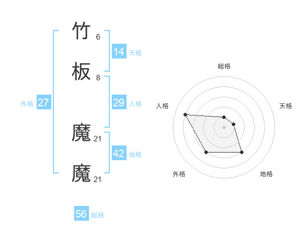 竹板 魔魔さんの総格は56画の1点!