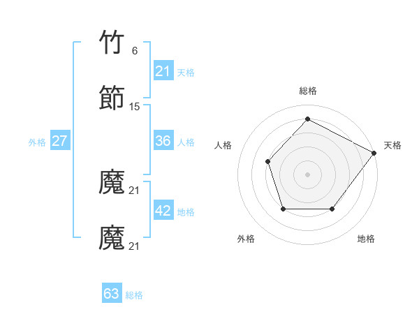 竹節 魔魔さんの総格は63画の4点!