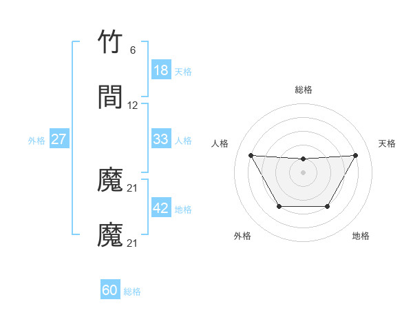 竹間 魔魔さんを姓名の画数から五運を鑑定