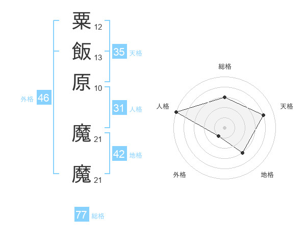 粟飯原 魔魔さんの総格は77画の3点