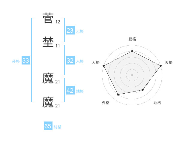 菅埜 魔魔さんの総格は65画の4点!