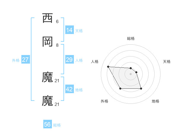 西岡 魔魔さんの総格は56画の1点!