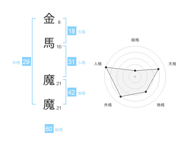 金馬 魔魔さんを姓名の画数から五運を鑑定