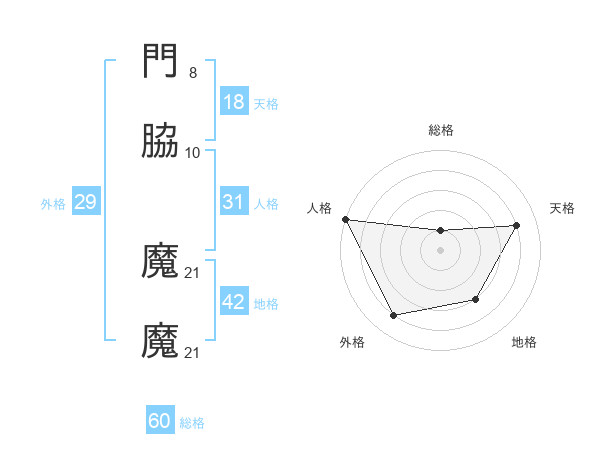 門脇 魔魔さんを姓名の画数から五運を鑑定