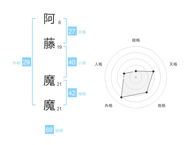 阿藤 魔魔さんの外格は29画の4点!