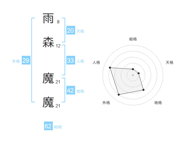 雨森 魔魔さんの外格は29画の4点!