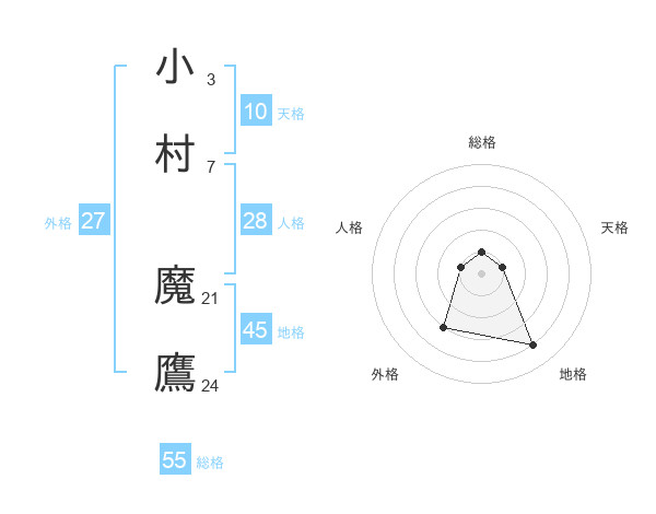 小村 魔鷹さんを姓名の画数から五運を鑑定