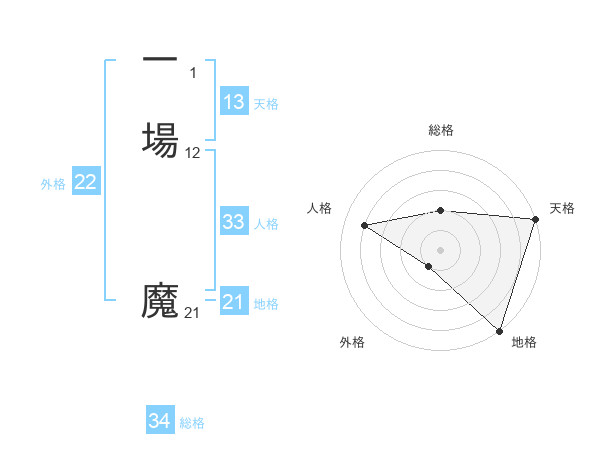一場 魔さんの地格は21画の5点!