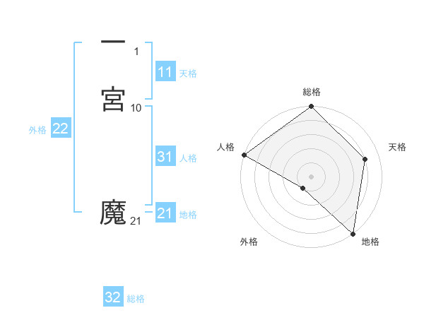 一宮 魔さんを姓名の画数から五運を鑑定