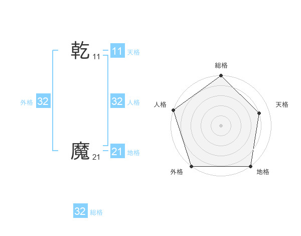 乾 魔さんの外格は32画の5点!