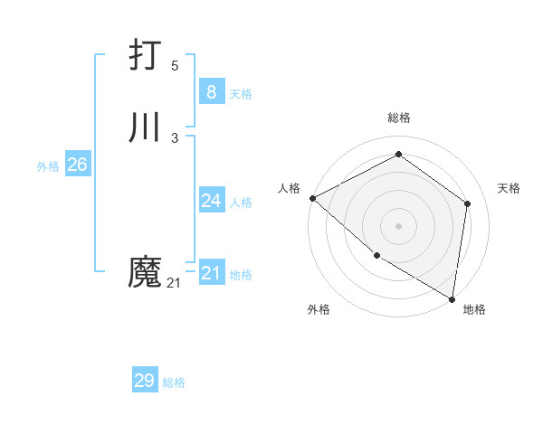 打川 魔さんの総格は29画の4点!