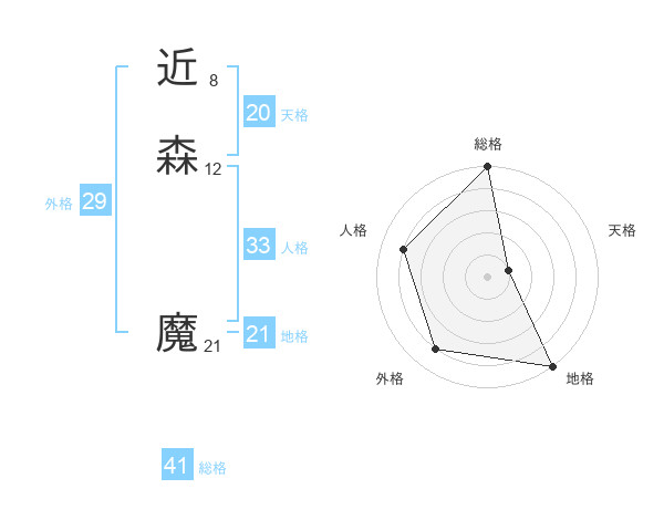近森 魔さんの外格は29画の4点!