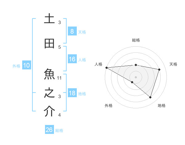 土田 魚之介さんを姓名の画数から五運を鑑定