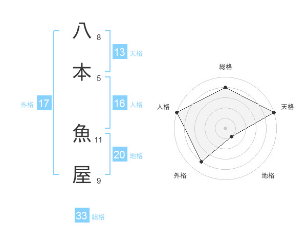 八本 魚屋さんの天格は13画の5点!