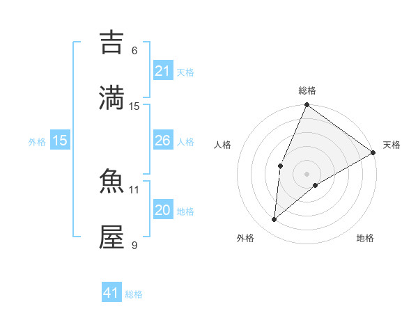 吉満 魚屋さんの天格は21画の5点!