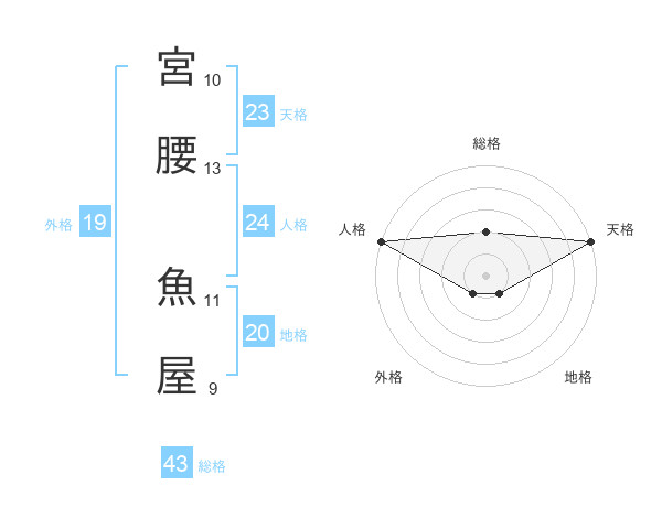 宮腰 魚屋さんを姓名の画数から五運を鑑定